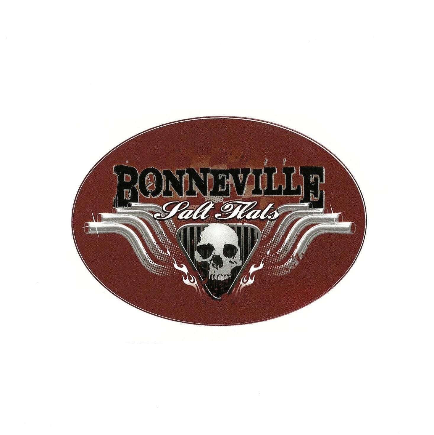 Bonneville Salt Flats Sticker or Decal with the text Bonneville Salt Flats featuring a skull, car grill, and pipes.