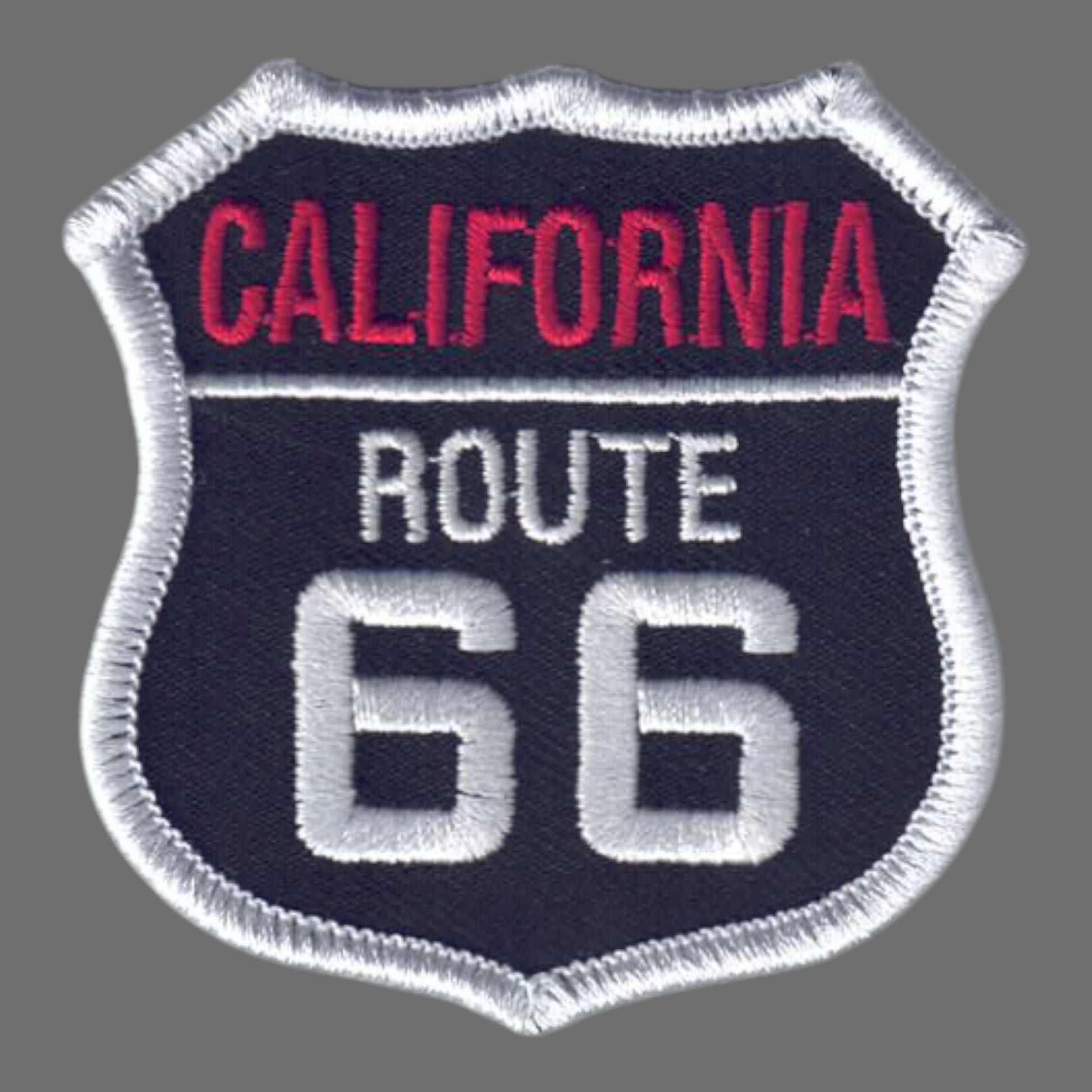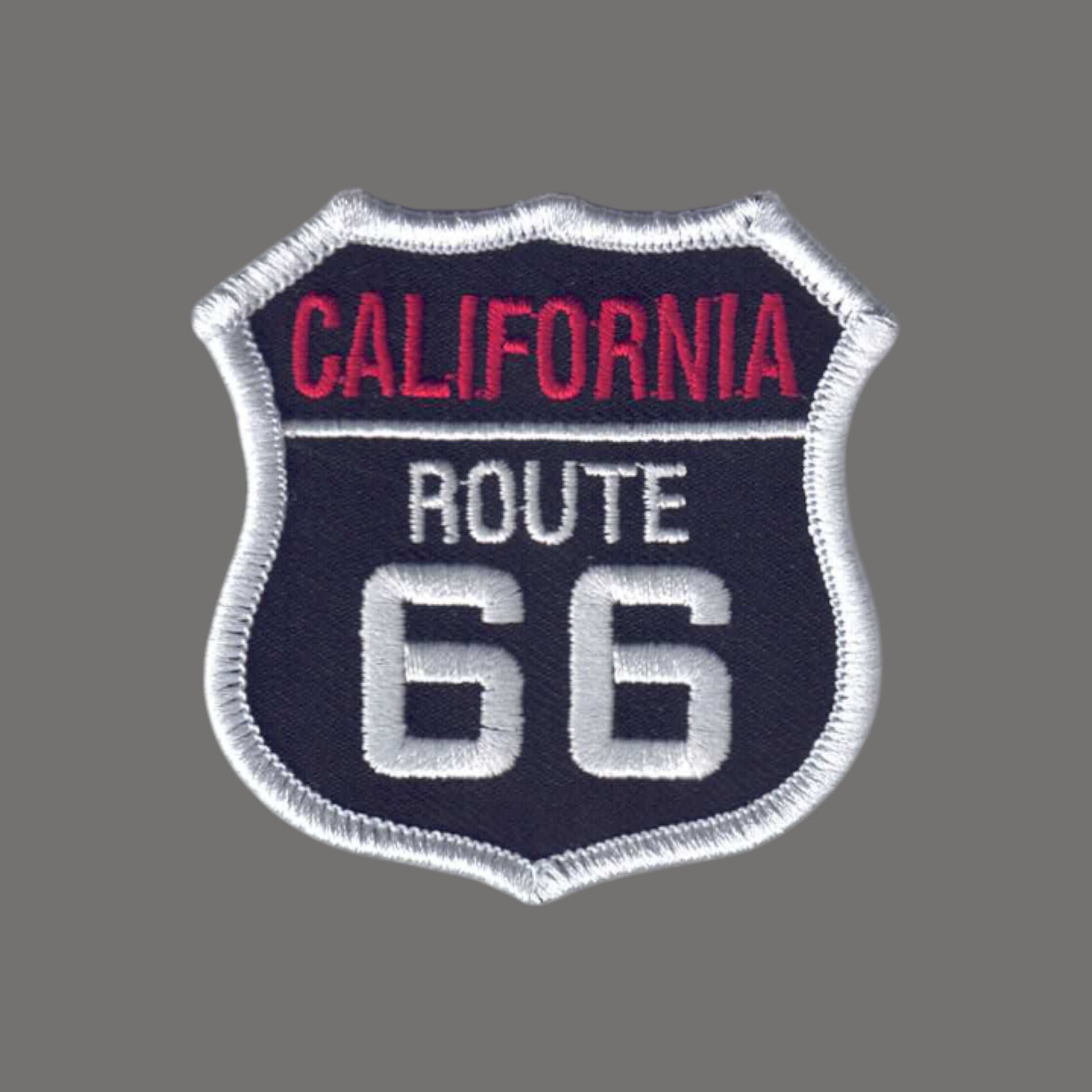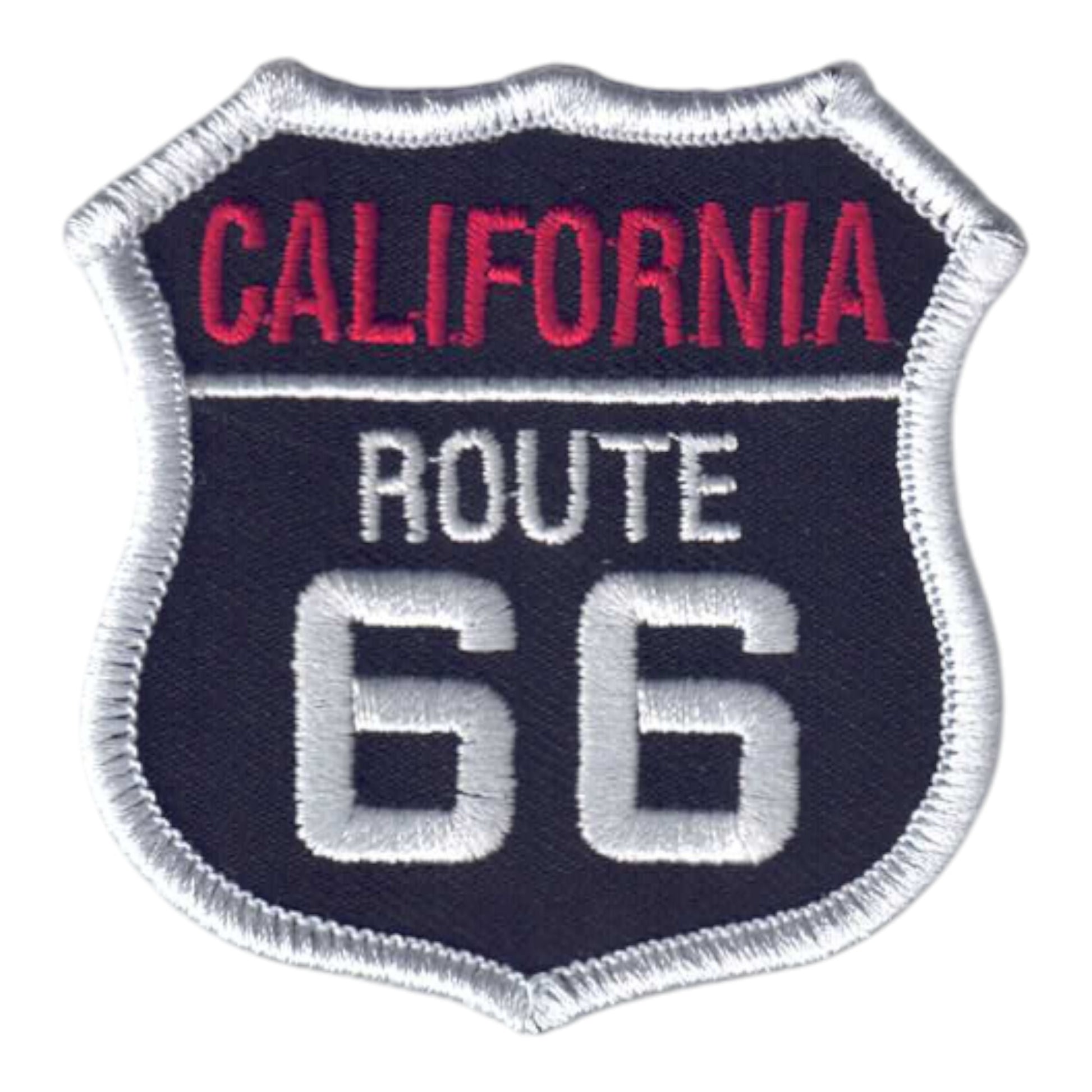 1236-01 - CALIFORNIA ROUTE 66 on White and Red Text on Black Background Embroidered Iron On Souvenir Patch