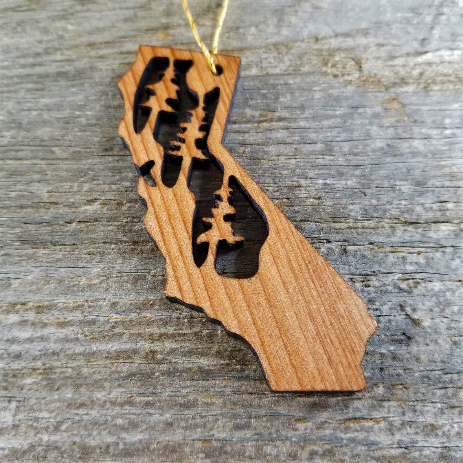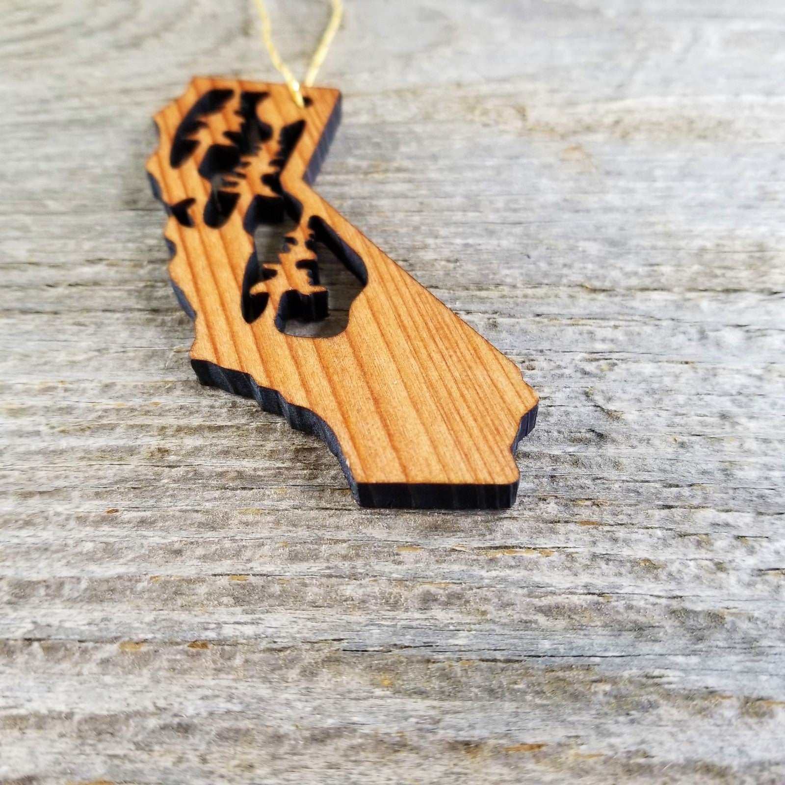 These California State Wood Christmas ornament is made out of Redwood, is laser cut, and made by my dad and I.