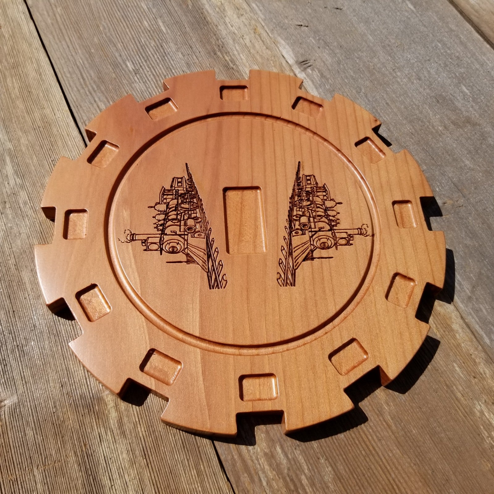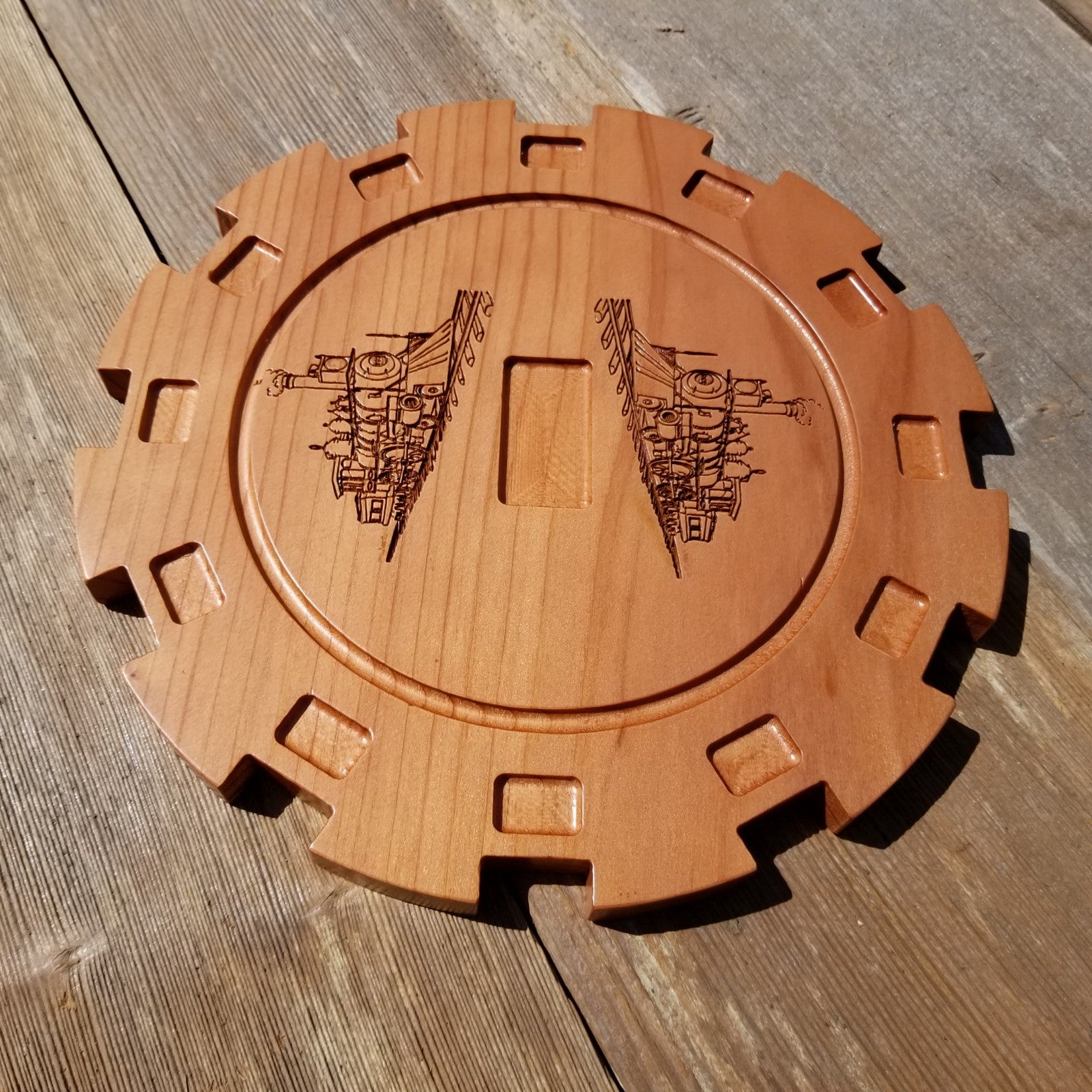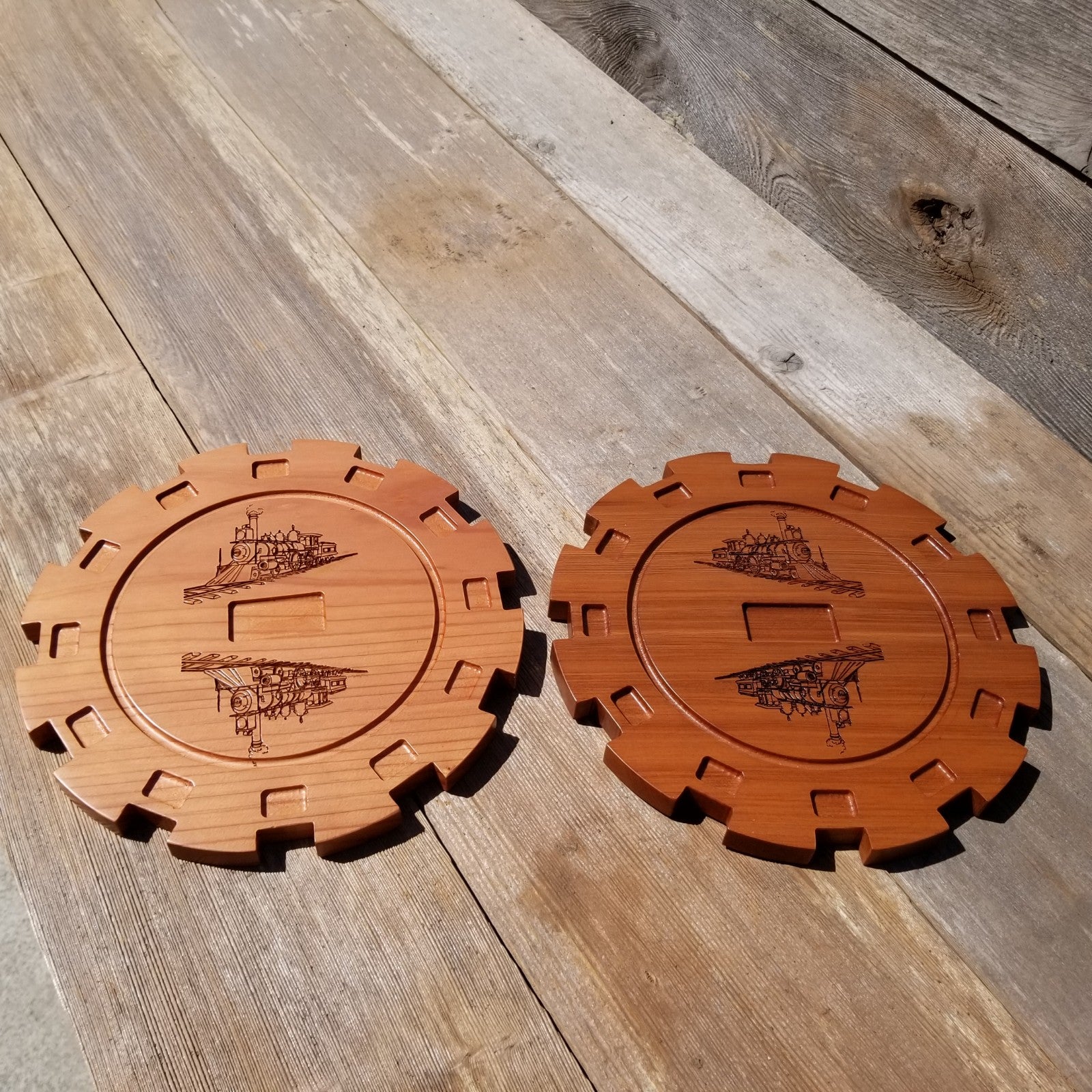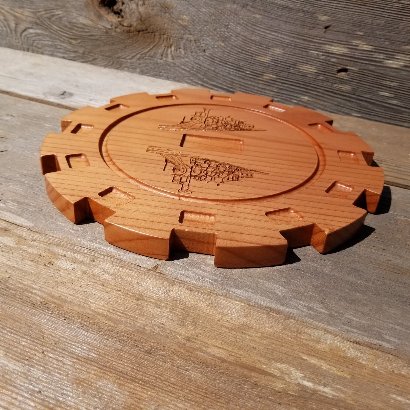 California Redwood Dominoes Mexican Train Hub Handcrafted in Northern California and engraved with two trains. Each board's grain, coloring, little dings, dents, knots, character, etc. will vary slightly. Stand out from the crowd on game night, at a party, and more by having a Mexican Train Dominoes Hub made out of California Redwood. Not everyone can say that.