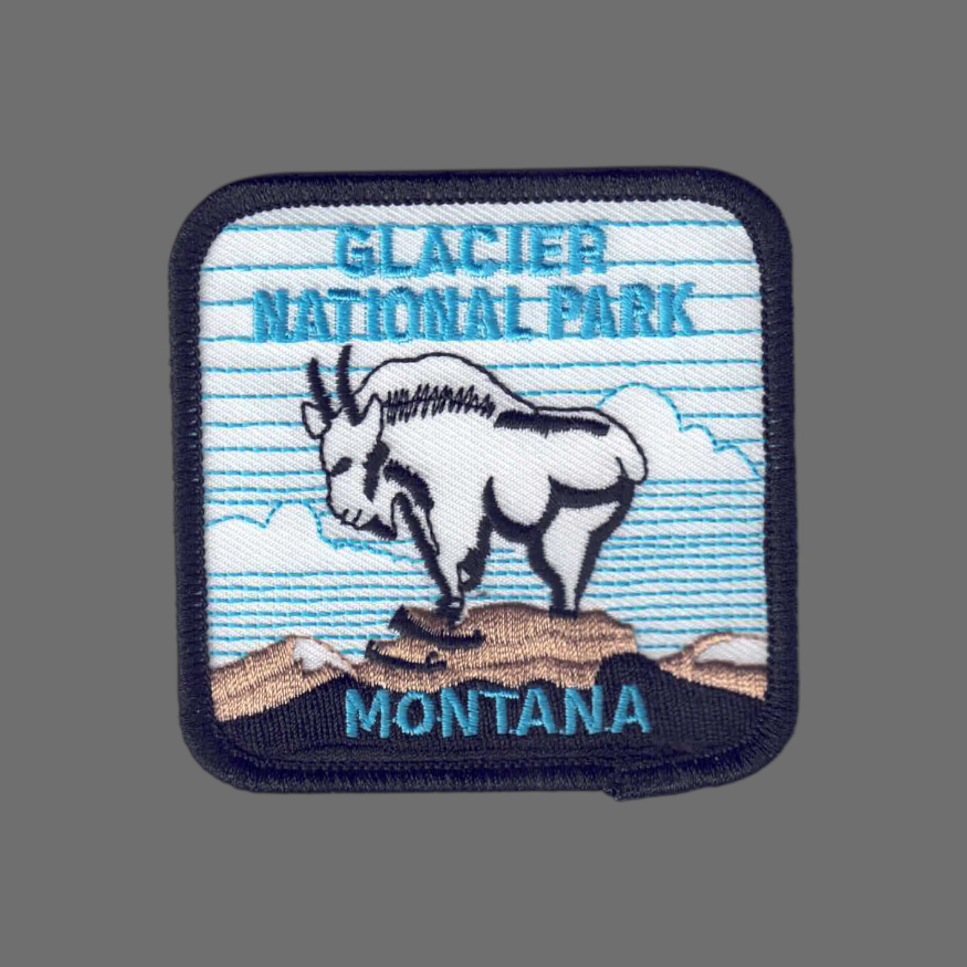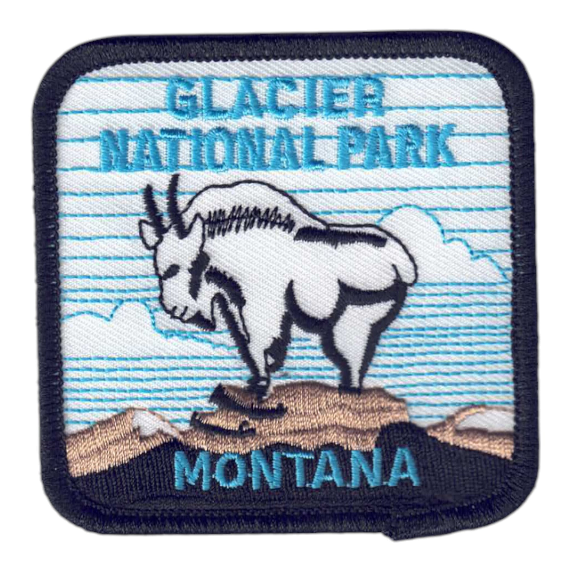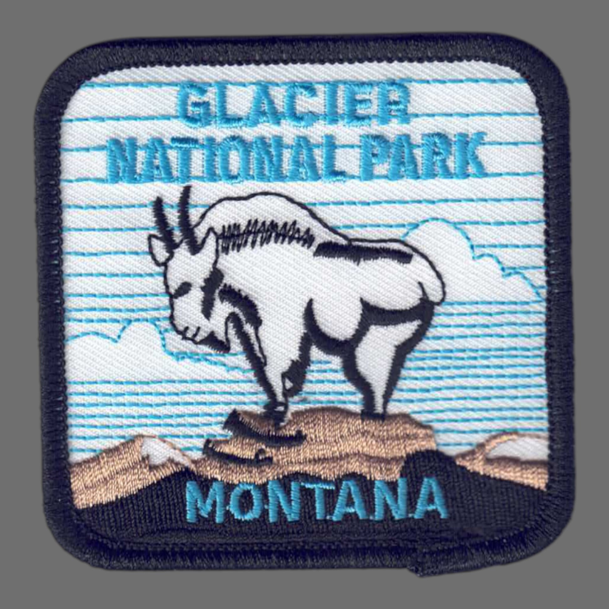 2348  - Glacier National Park Mountain Goat Embroidered Iron Souvenir Patch, Badge, or Emblem. A Great Montana Souvenir!