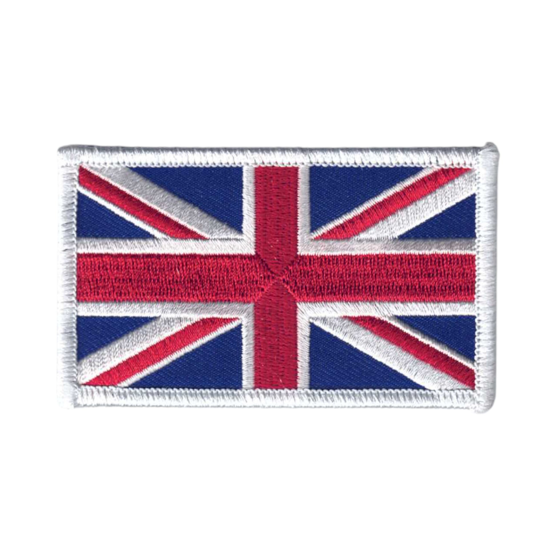 6224-W - British Union Jack flag embroidered patch with a white border Iron On Souvenir Patch, Badge, or Emblem. (Union Flag or Union Jack United Kingdom Flag)