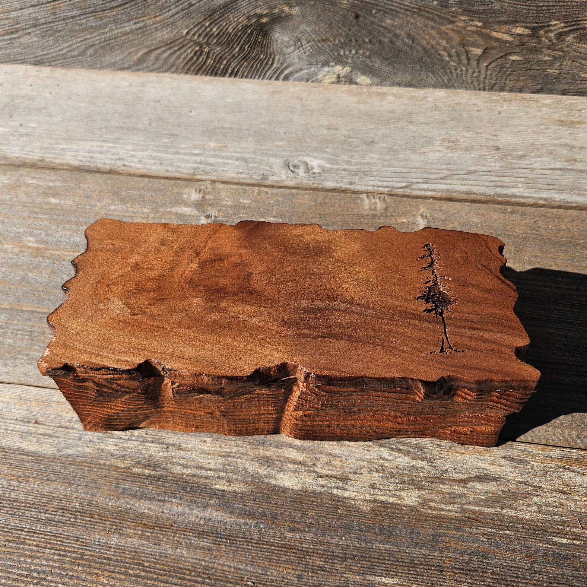 Handmade Wood Box with Redwood Tree Engraved Rustic Handmade #613 California Redwood Jewelry Box Storage Box