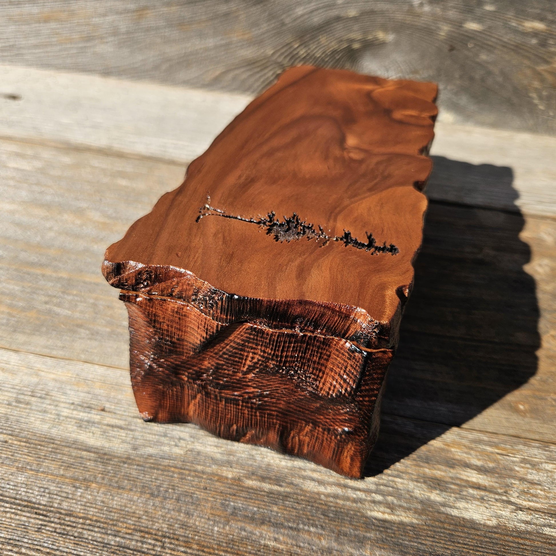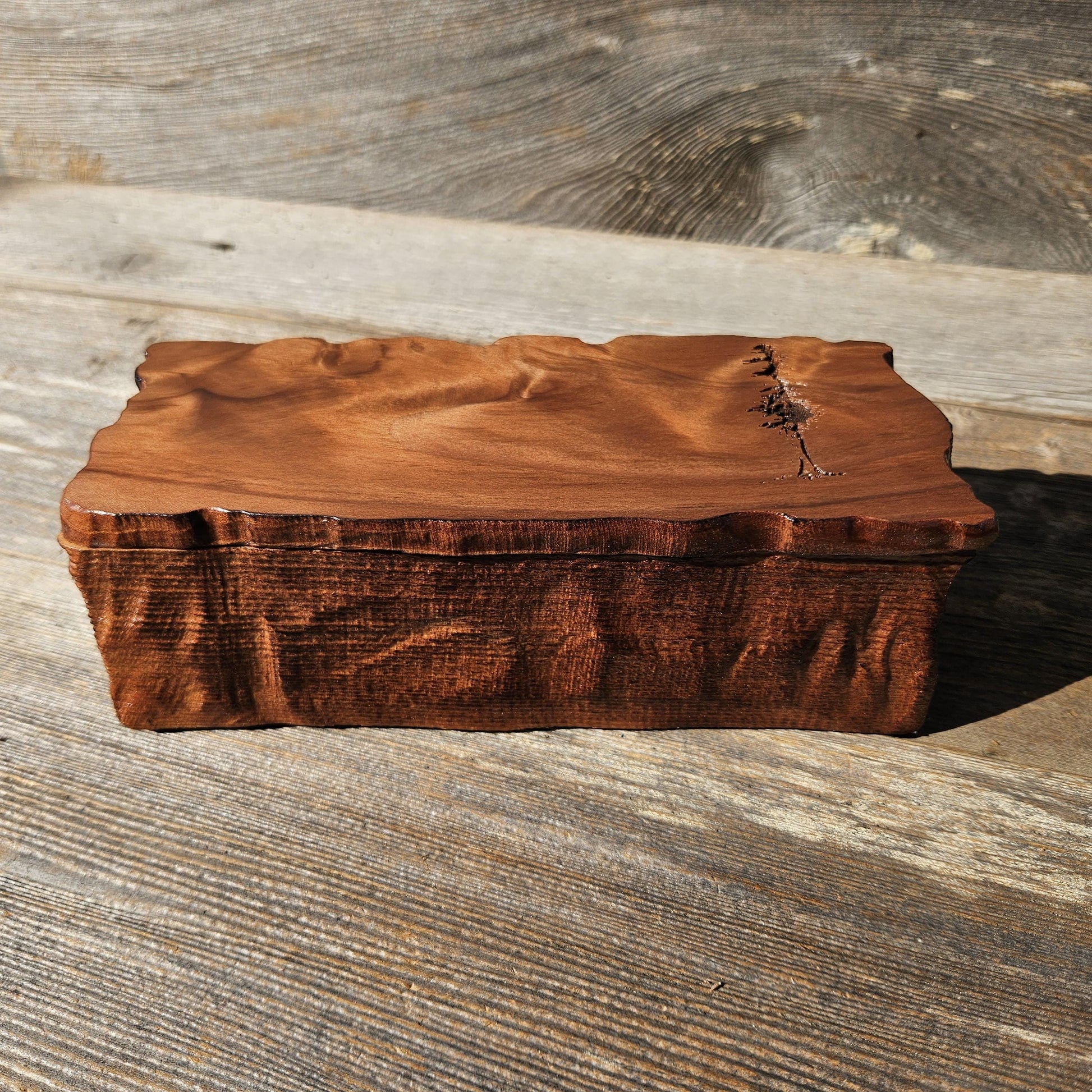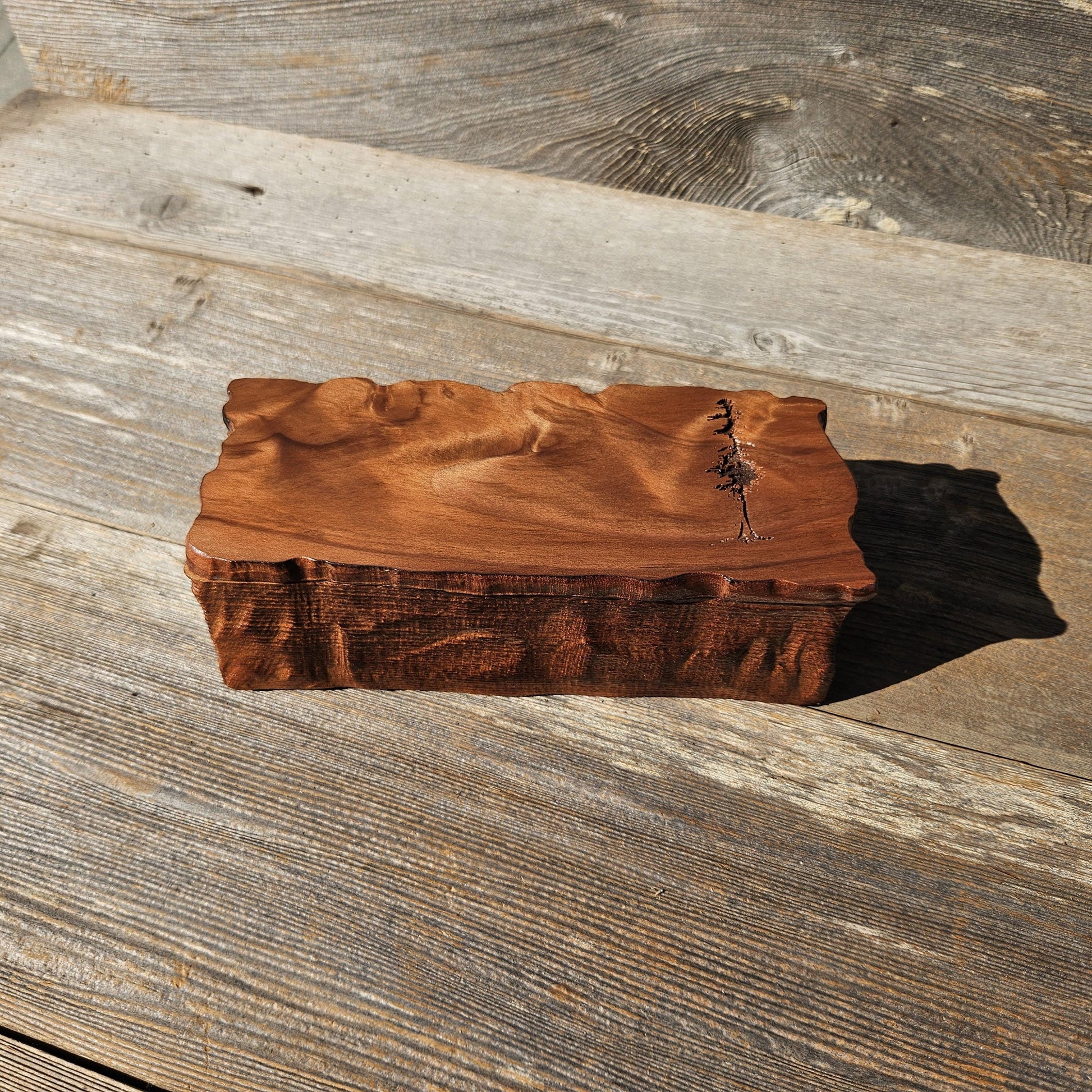 Handmade Wood Box with Redwood Tree Engraved Rustic Handmade Curly Wood #617