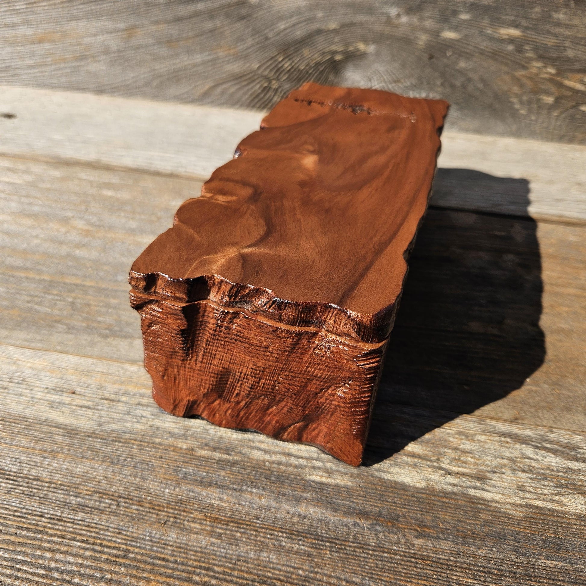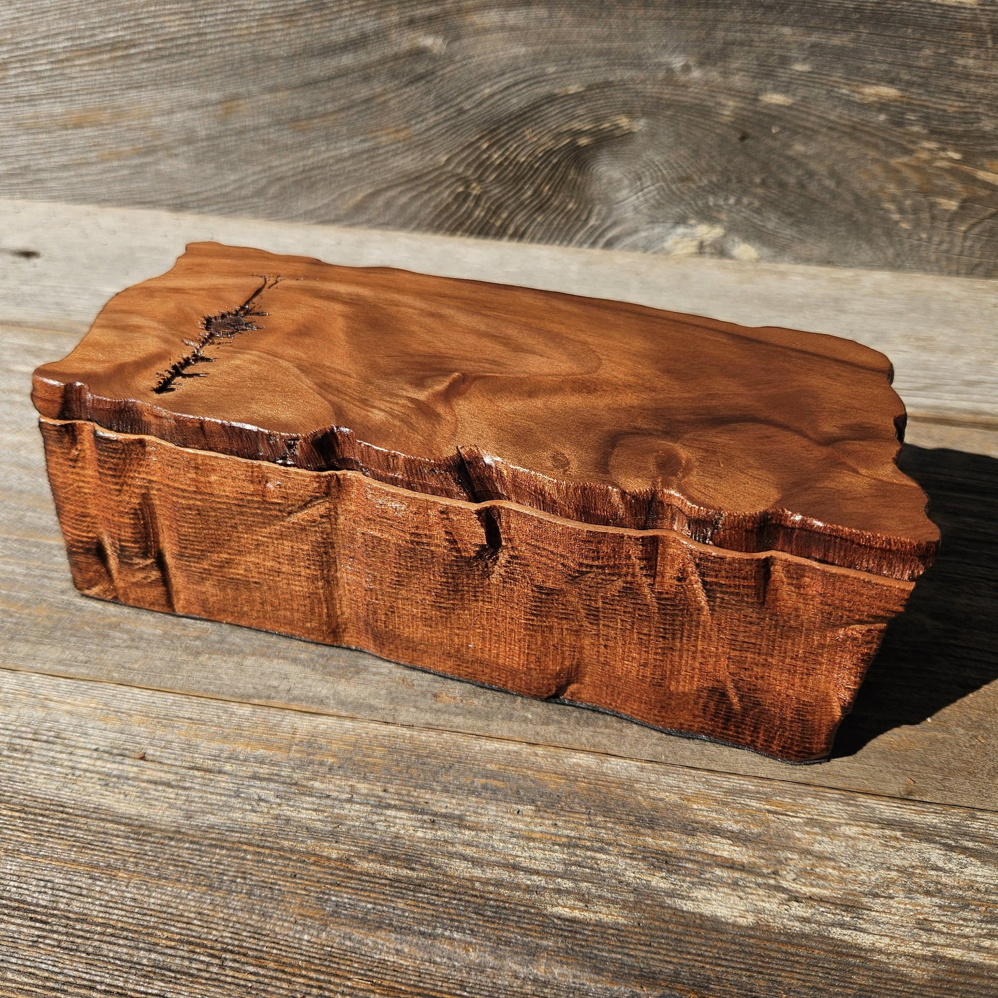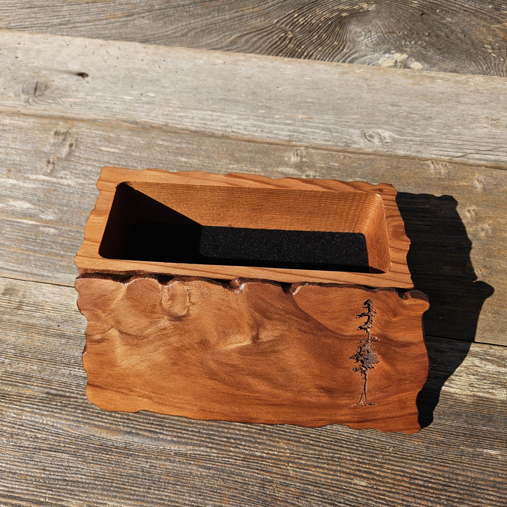 Handmade Wood Box with Redwood Tree Engraved Rustic Handmade Curly Wood #617