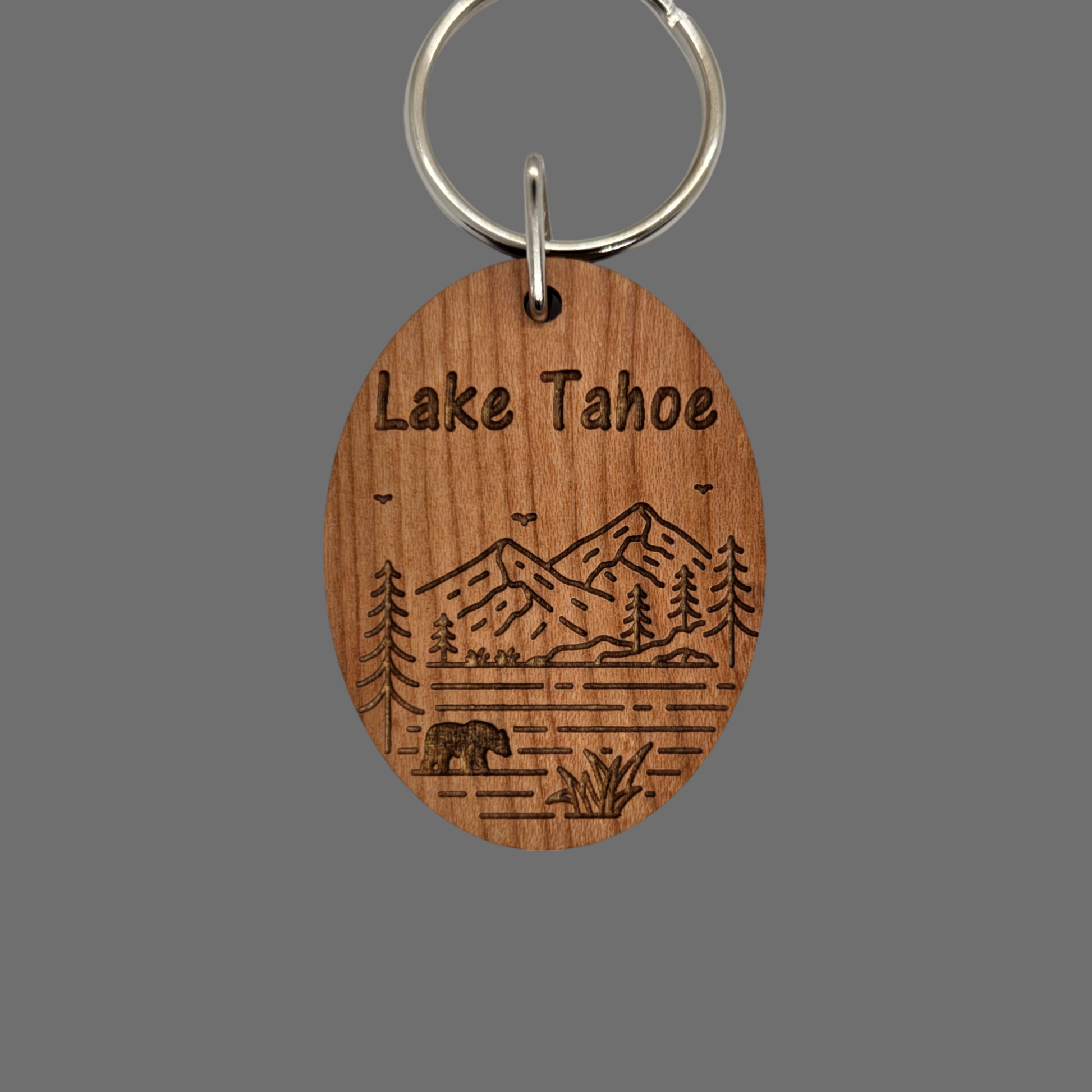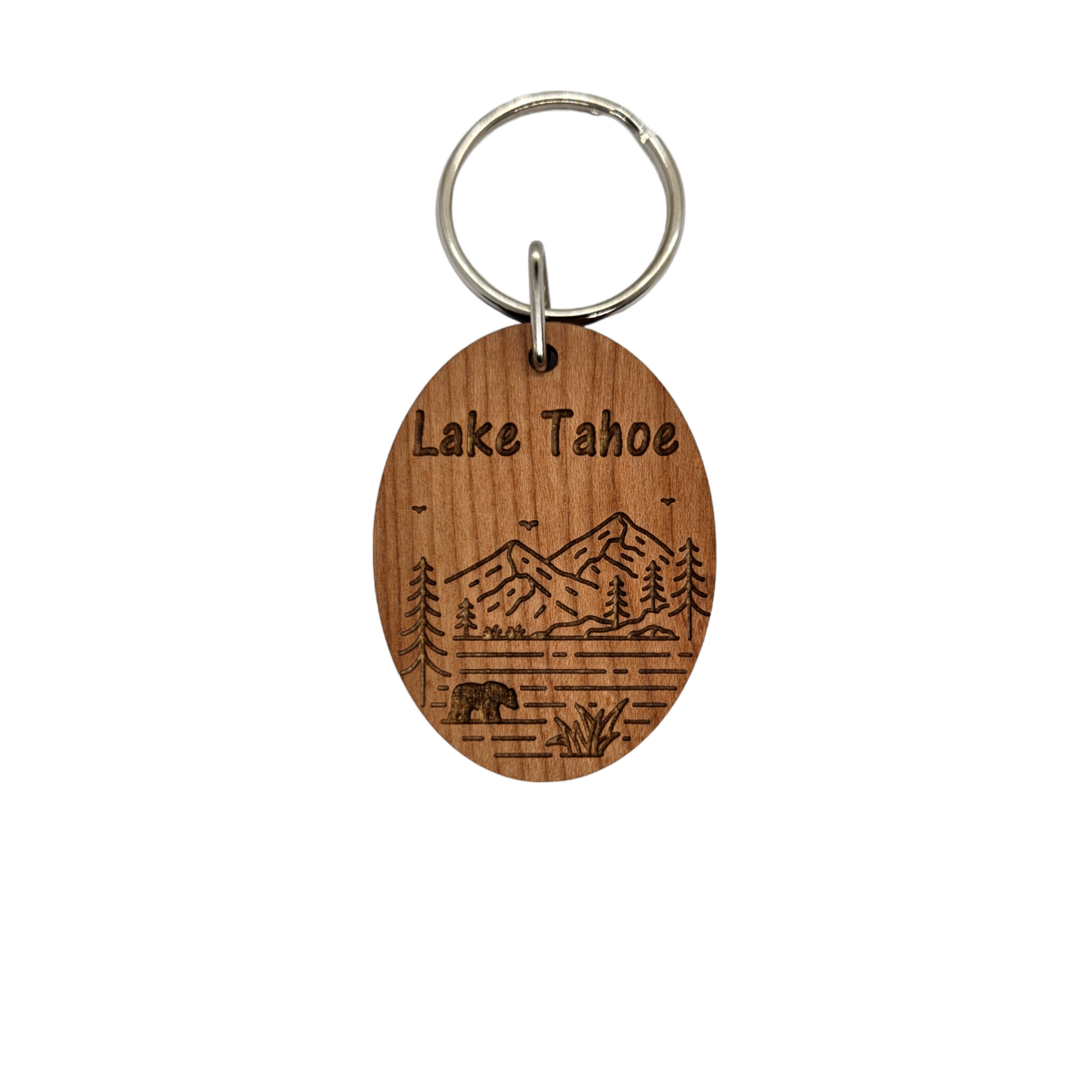 Lake Tahoe Mountain Trees Bear Keychain Wood Keyring Souvenir Key Chain Key Ring - KC8173