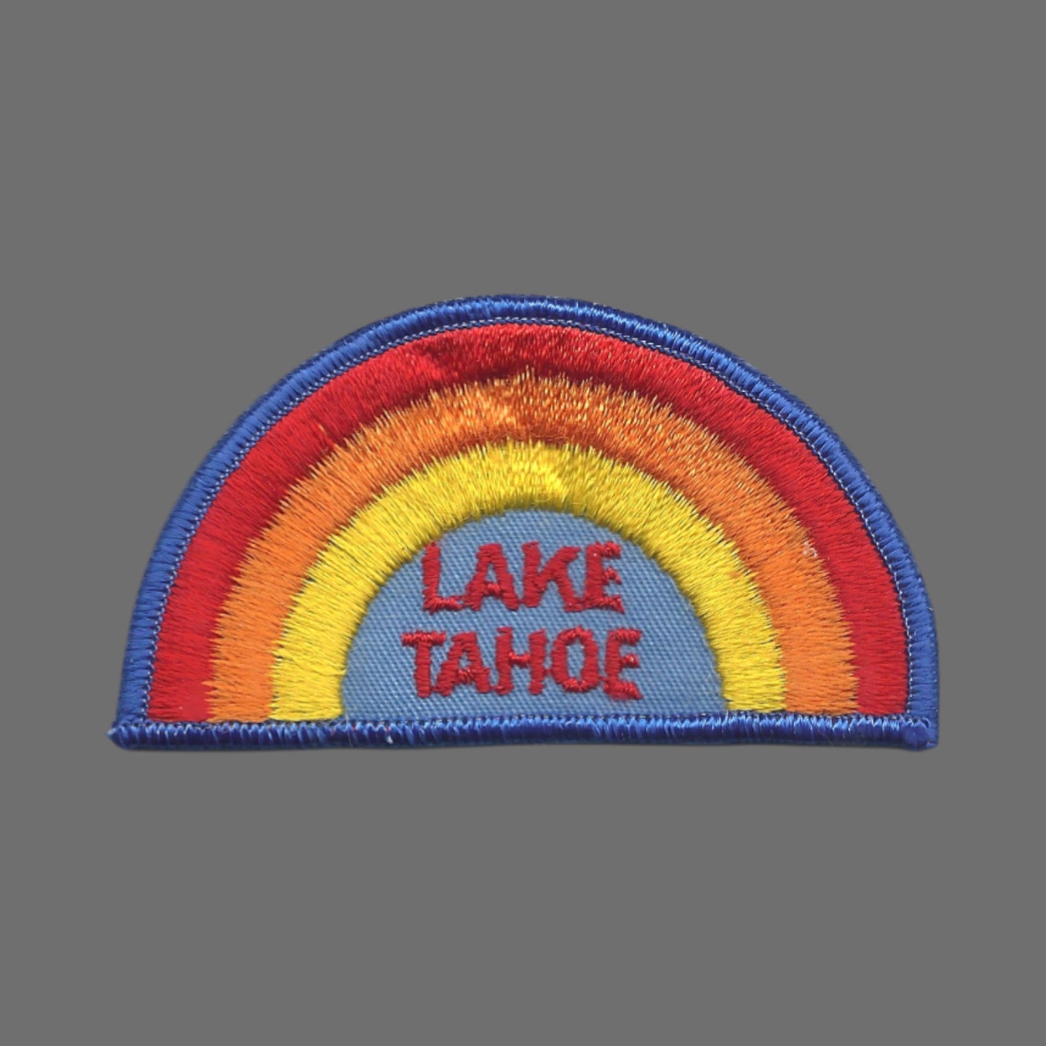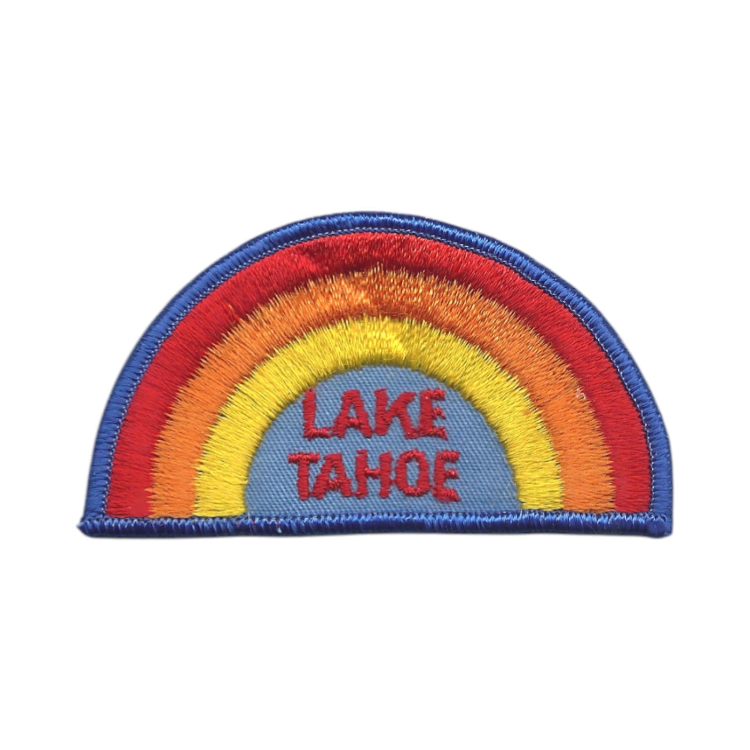 TAHOE-04 - LAKE TAHOE Rainbow Souvenir Embroidered Patch with Dark Royal Blue Border