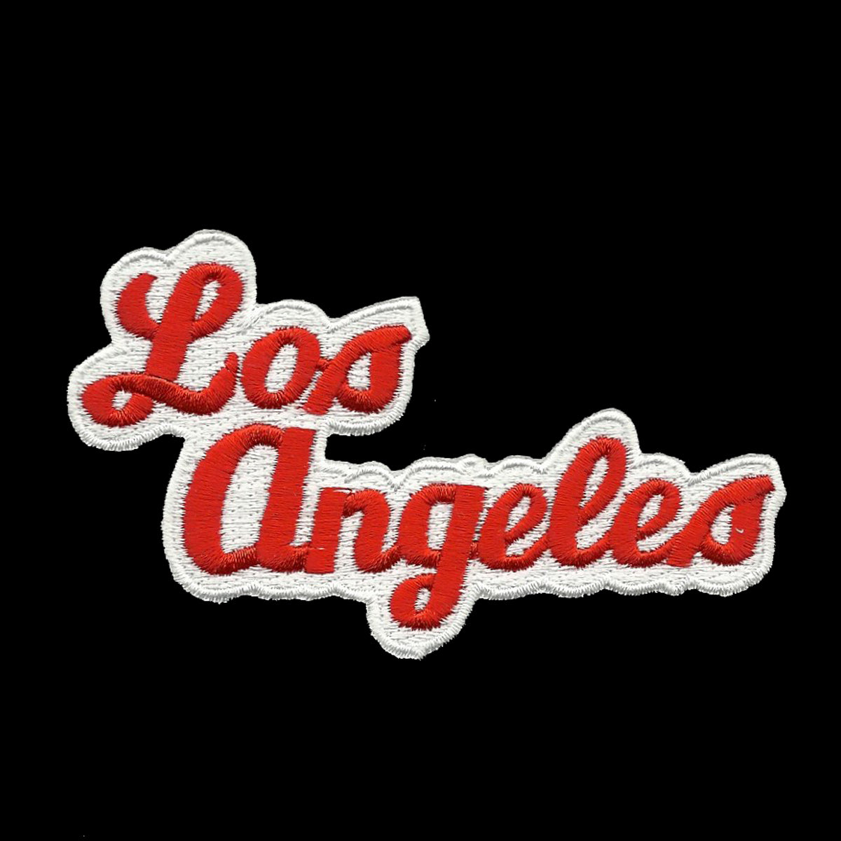 4603-36/39 - Los Angeles script text or font Red Words on White Souvenir Patch, Badge, or Emblem.