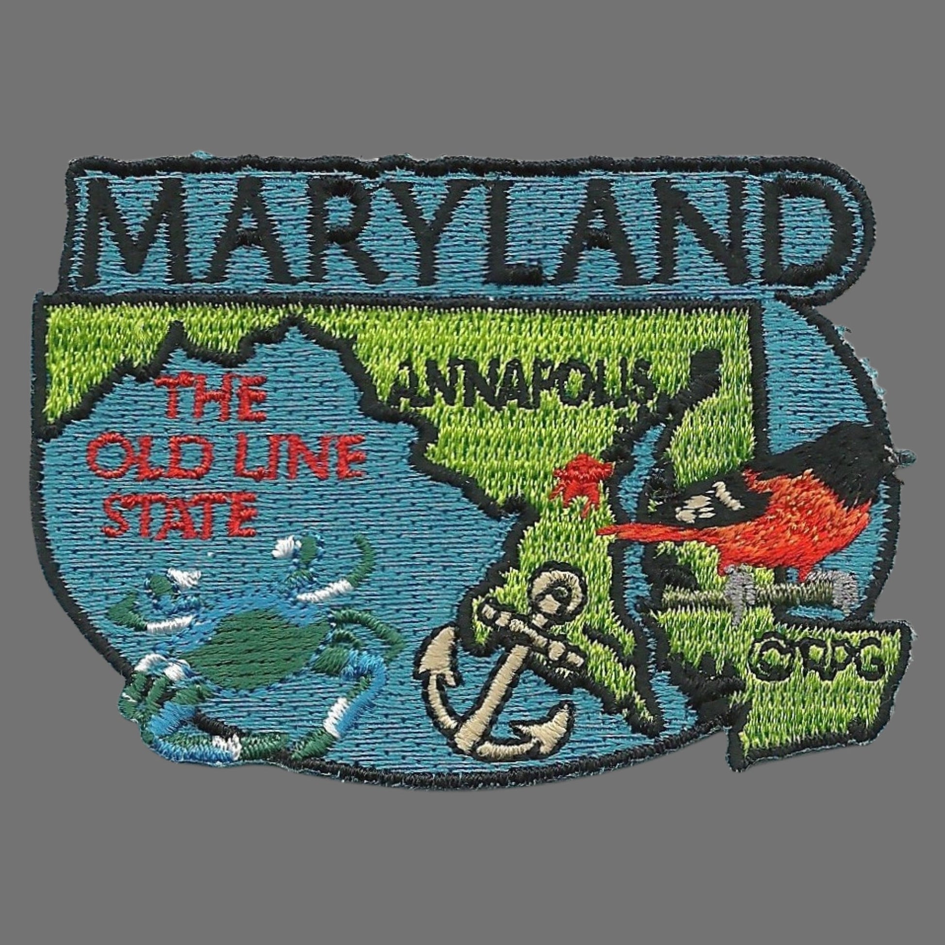 Maryland Patch – MD State Travel Patch Souvenir Embellishment or Applique 3" The Old Line State Annapolis Iron on Anchor Chesapeake Blue Crab