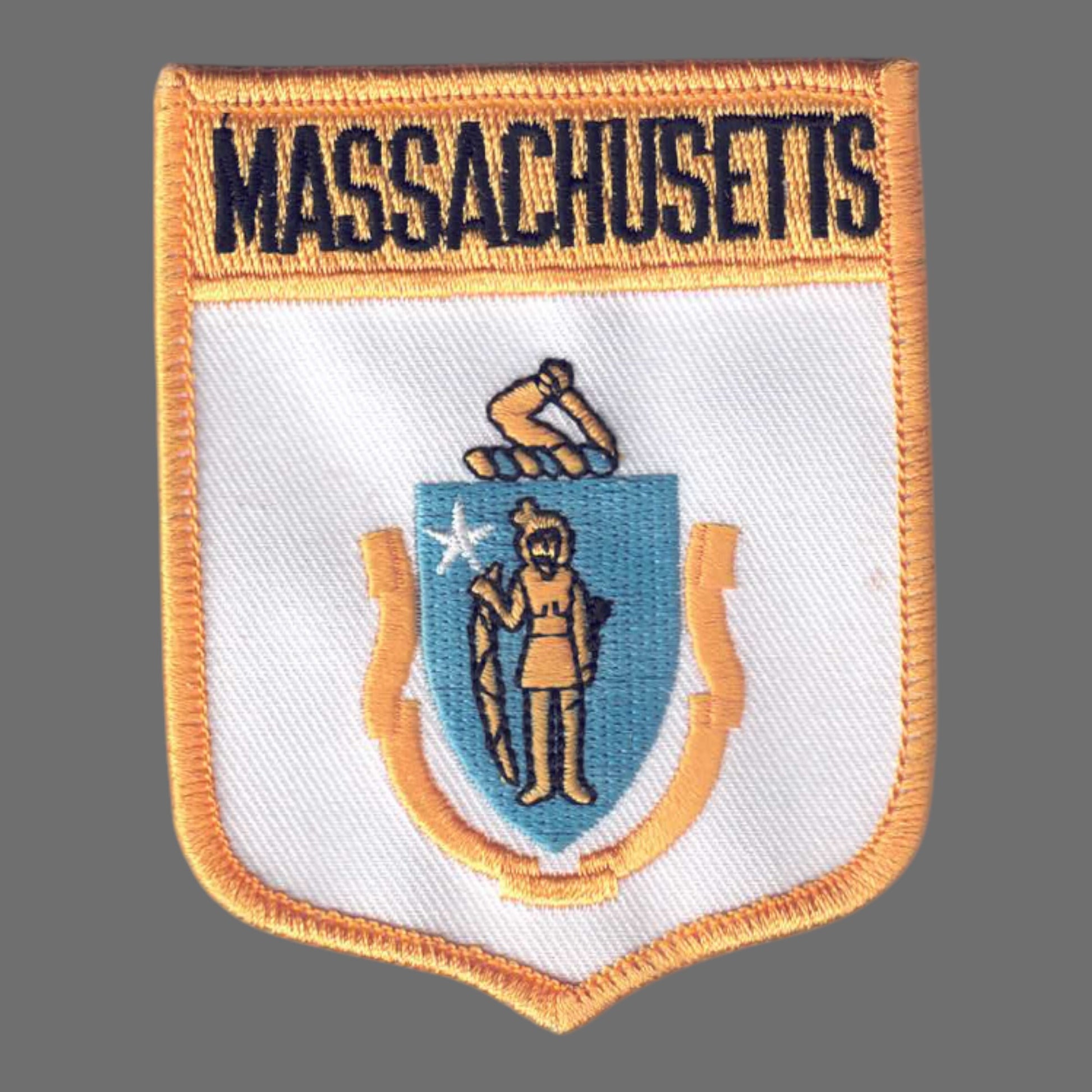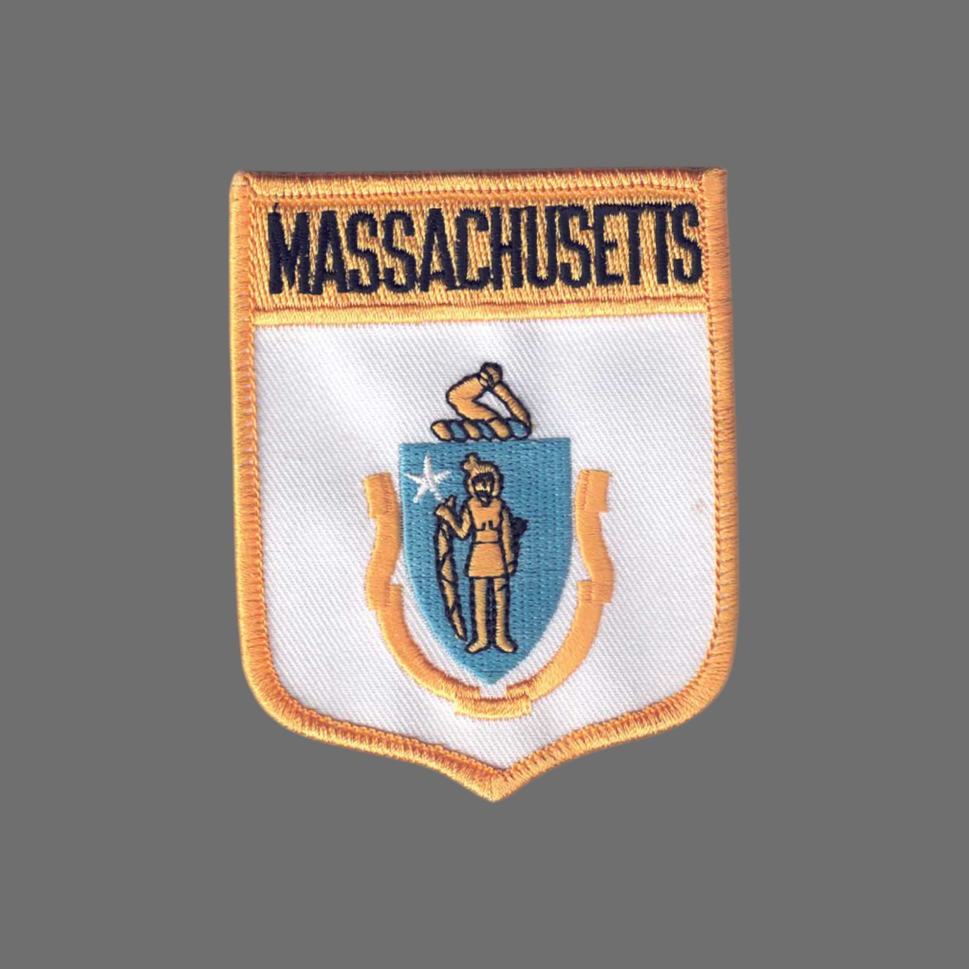 2052 - MASSACHUSETTS Large State Flag Shield Uniform or Souvenir Patch, Badge, or Emblem. These are vintage so not quite as high quality as some of our other patches.