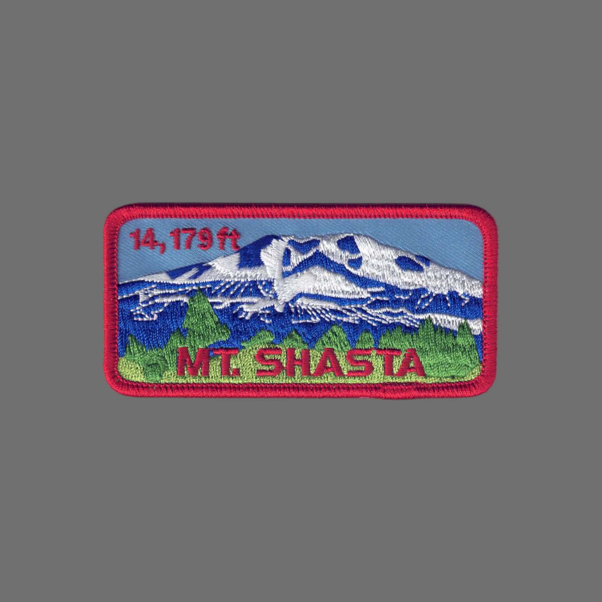 4811 - MT. SHASTA 14,179 FT Embroidered Iron On Souvenir Patch, Badge, or Emblem Rectangle Shape.