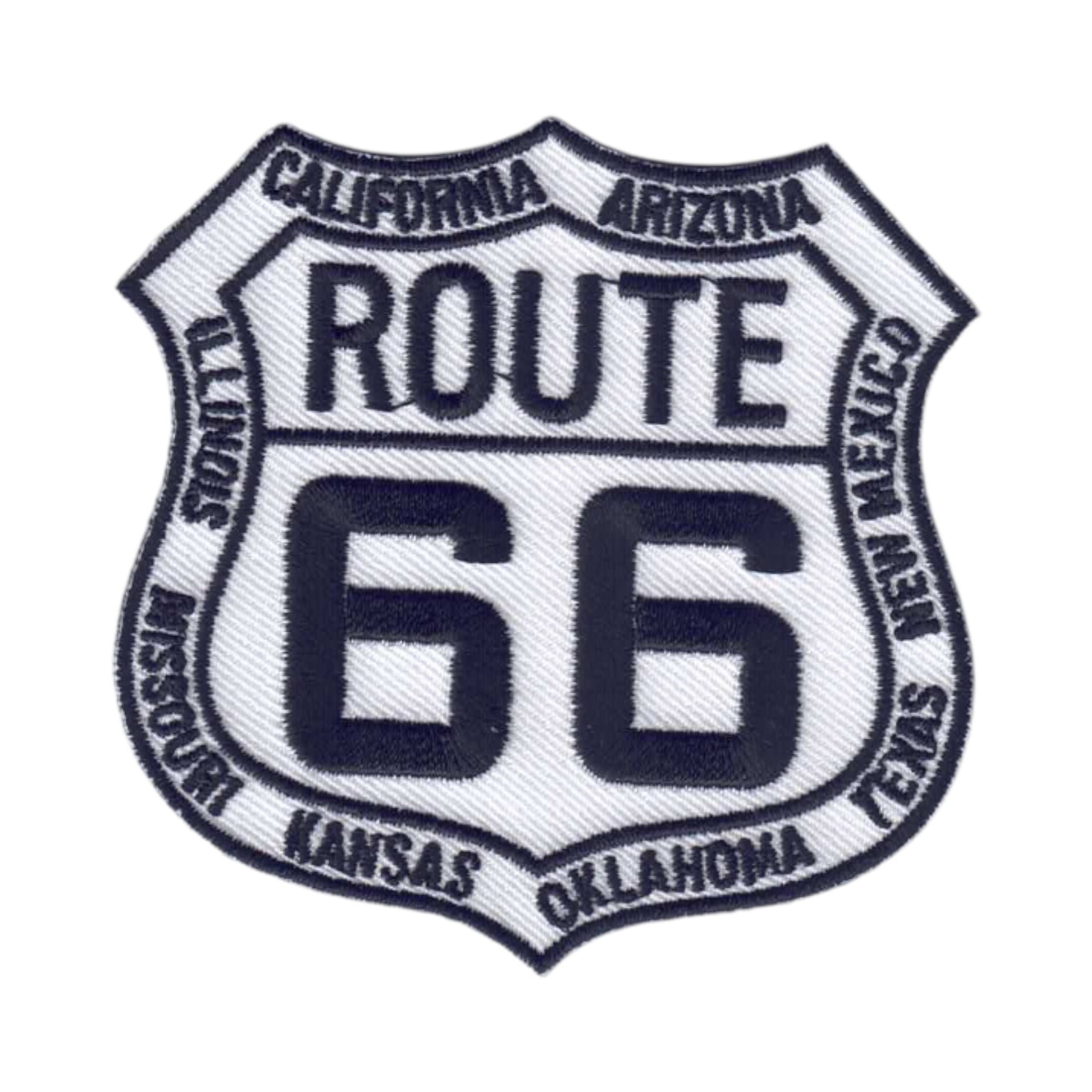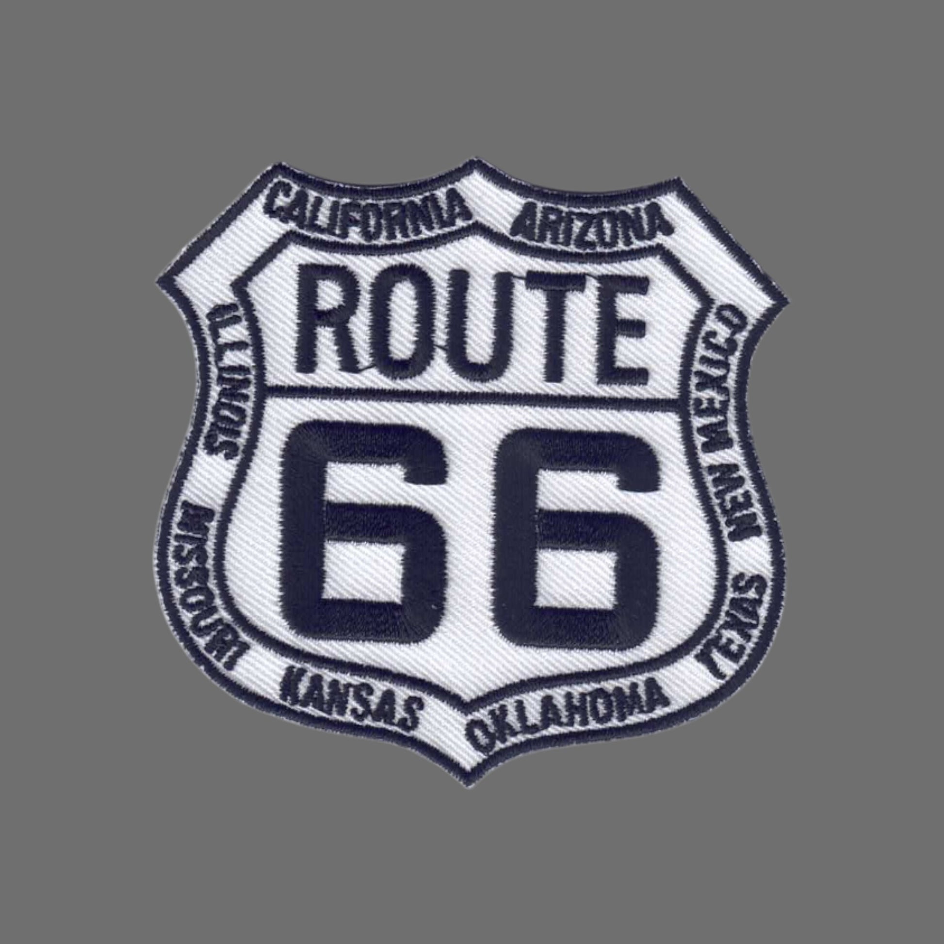 6893 - ROUTE 66 with 8 State Names Souvenir Patch, Badge, or Emblem. Route 66 USA Red White Blue