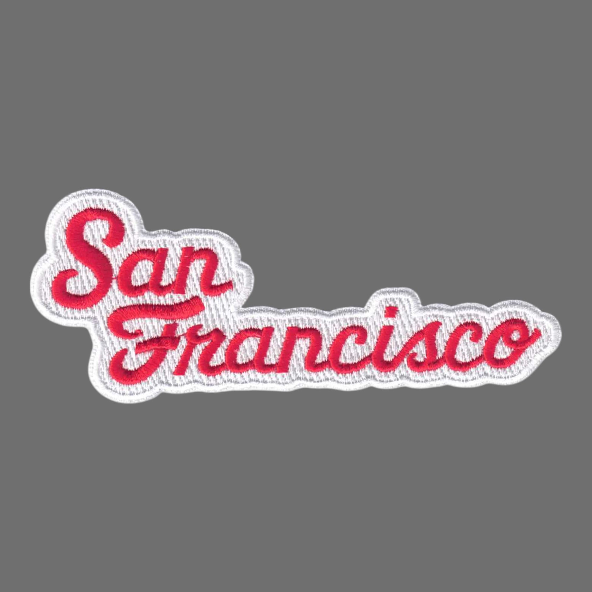 4020-36/39 - San Francisco script text or font Red Words on White Souvenir Patch, Badge, or Emblem.