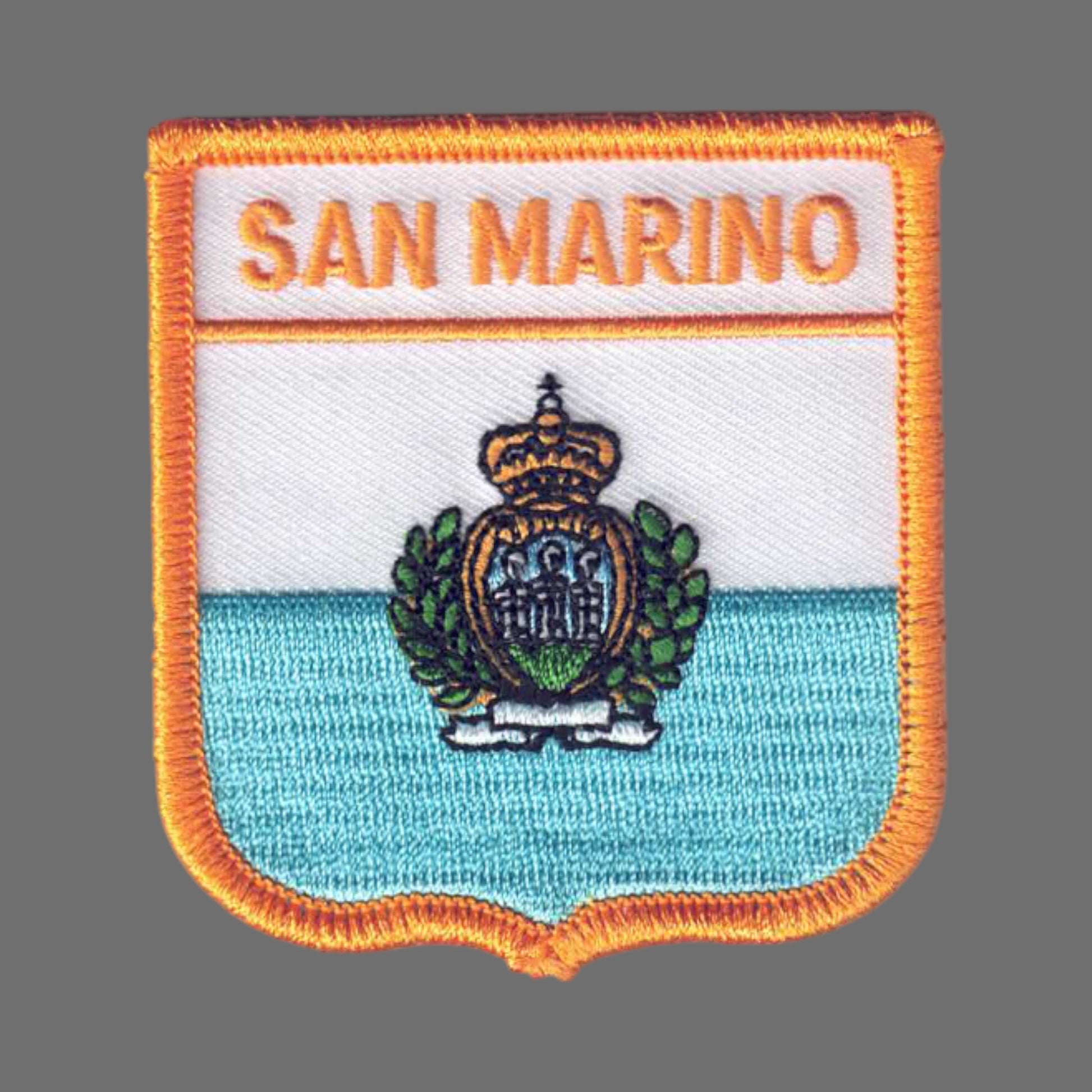 6065 - SAN MARINO Medium Country Flag Shield Uniform or Souvenir Patch, Badge, or Emblem.
