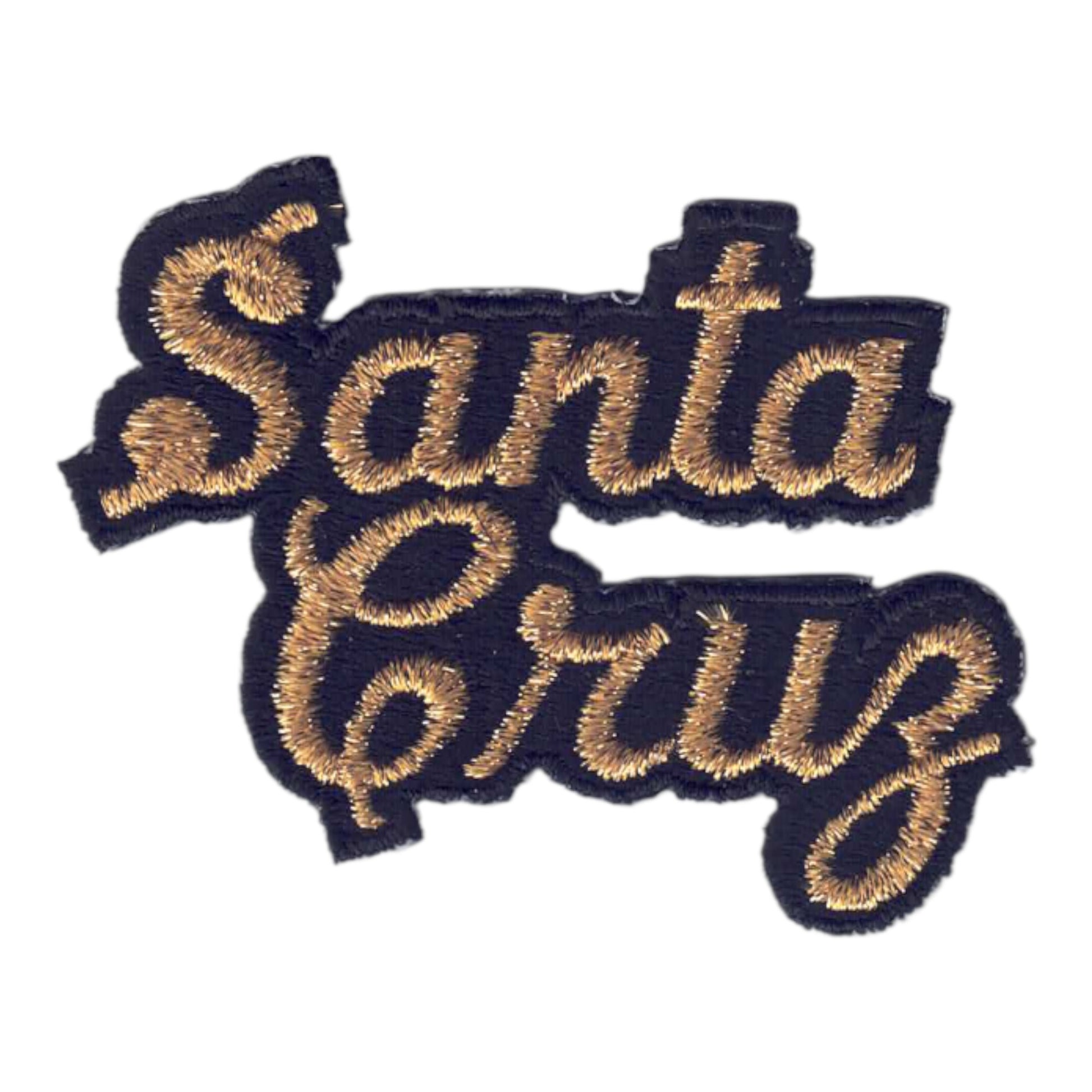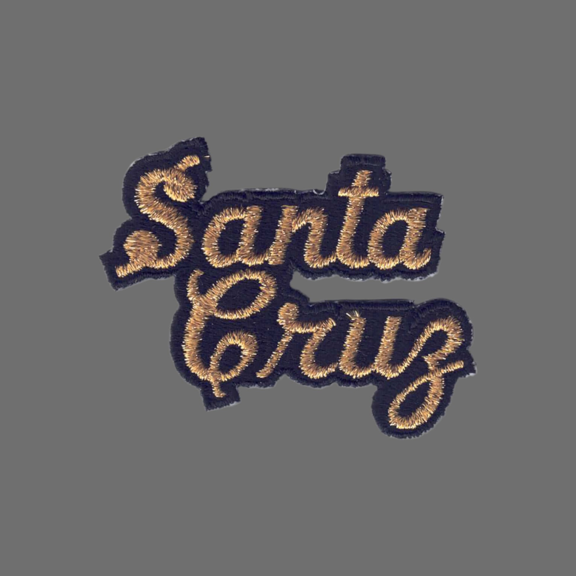 4402-21M/01 - Vintage Santa Cruz script cursive Text Cursive Gold Words on Black Souvenir Patch, Badge, or Emblem.