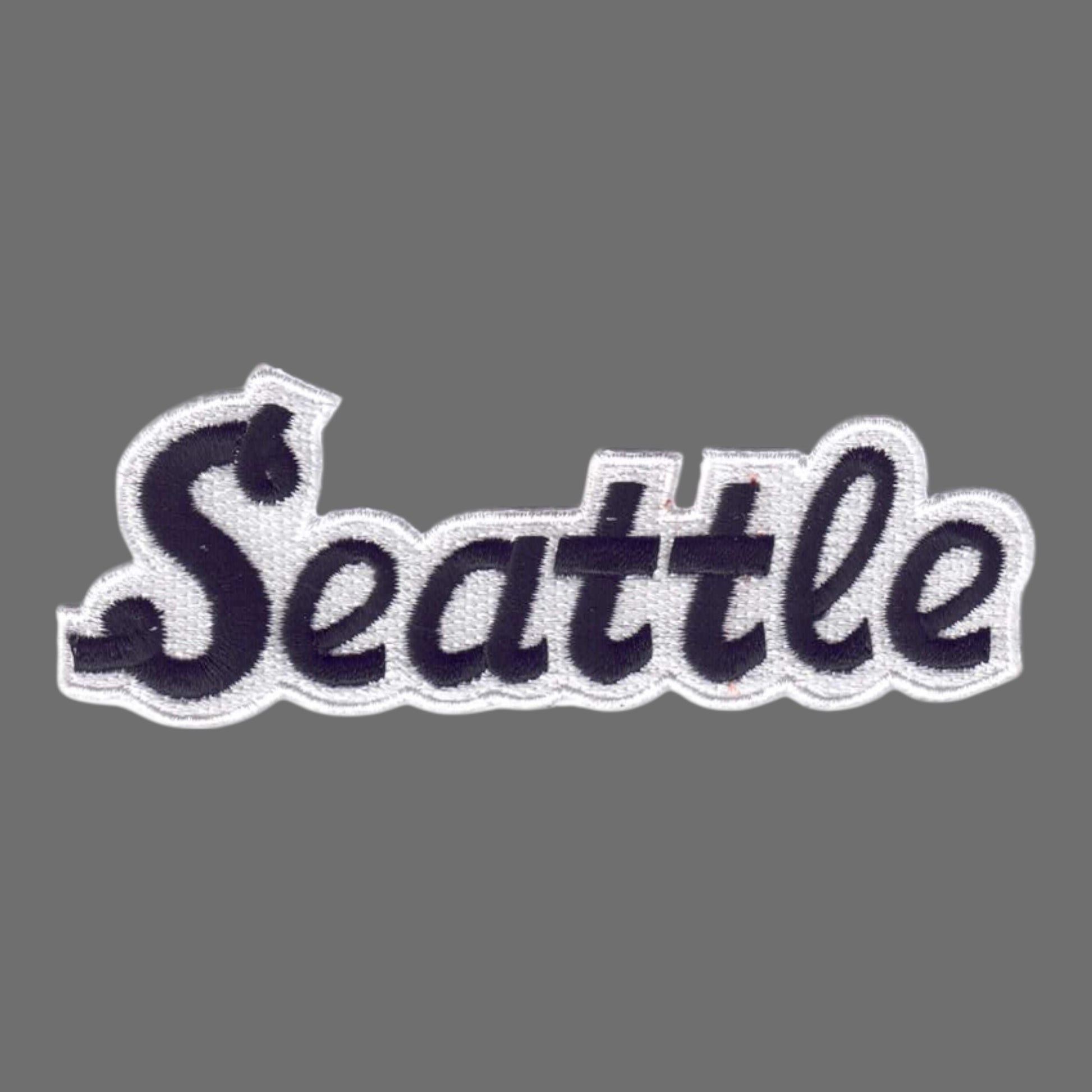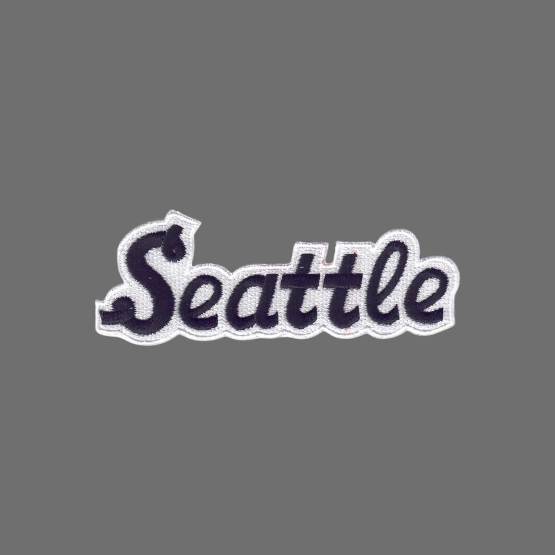 3396-01/39 - Seattle script text or font Black Words on White Souvenir Patch, Badge, or Emblem.