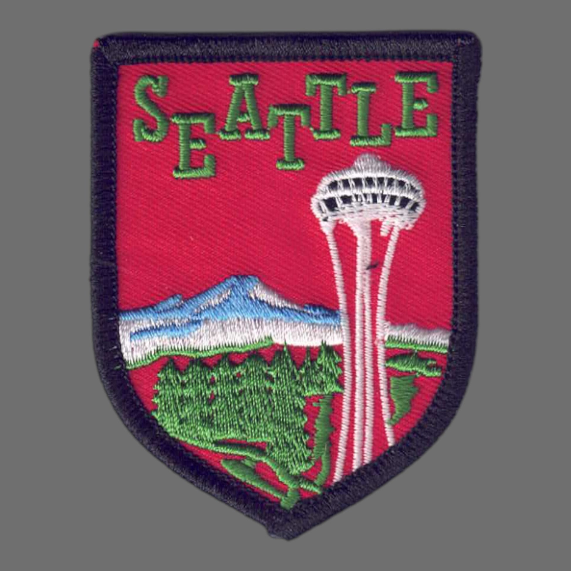 3356 - SEATTLE Space Needle Mount Rainier Red Souvenir Patch, Badge, or Emblem.
