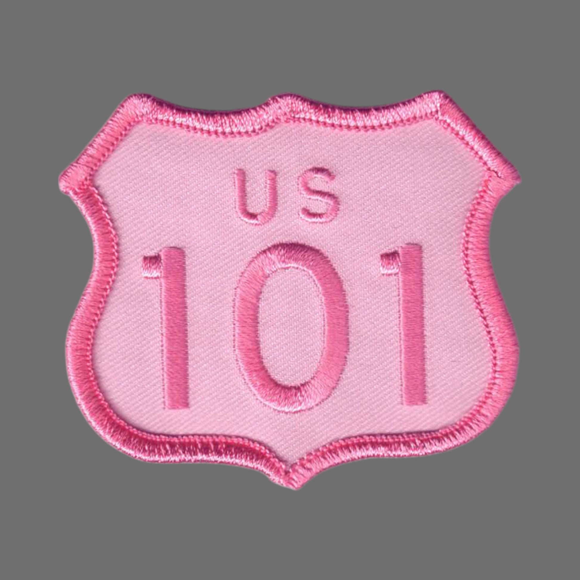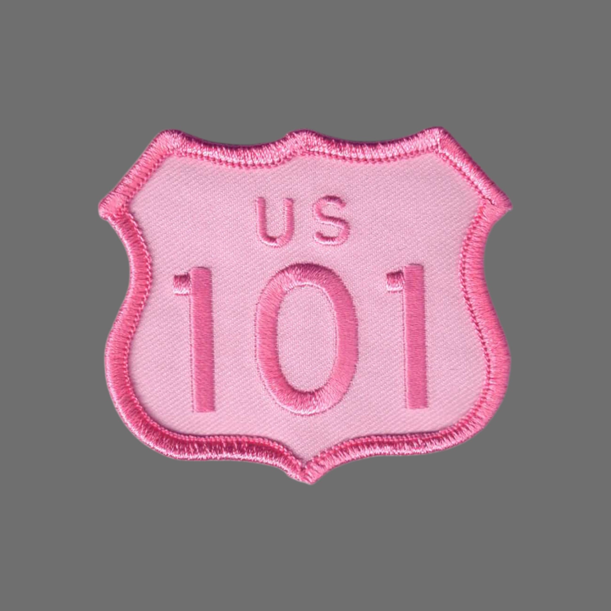 8101-56 - US 101 Highway 101 Hwy 101 Souvenir Patch, Badge, or Emblem Pink