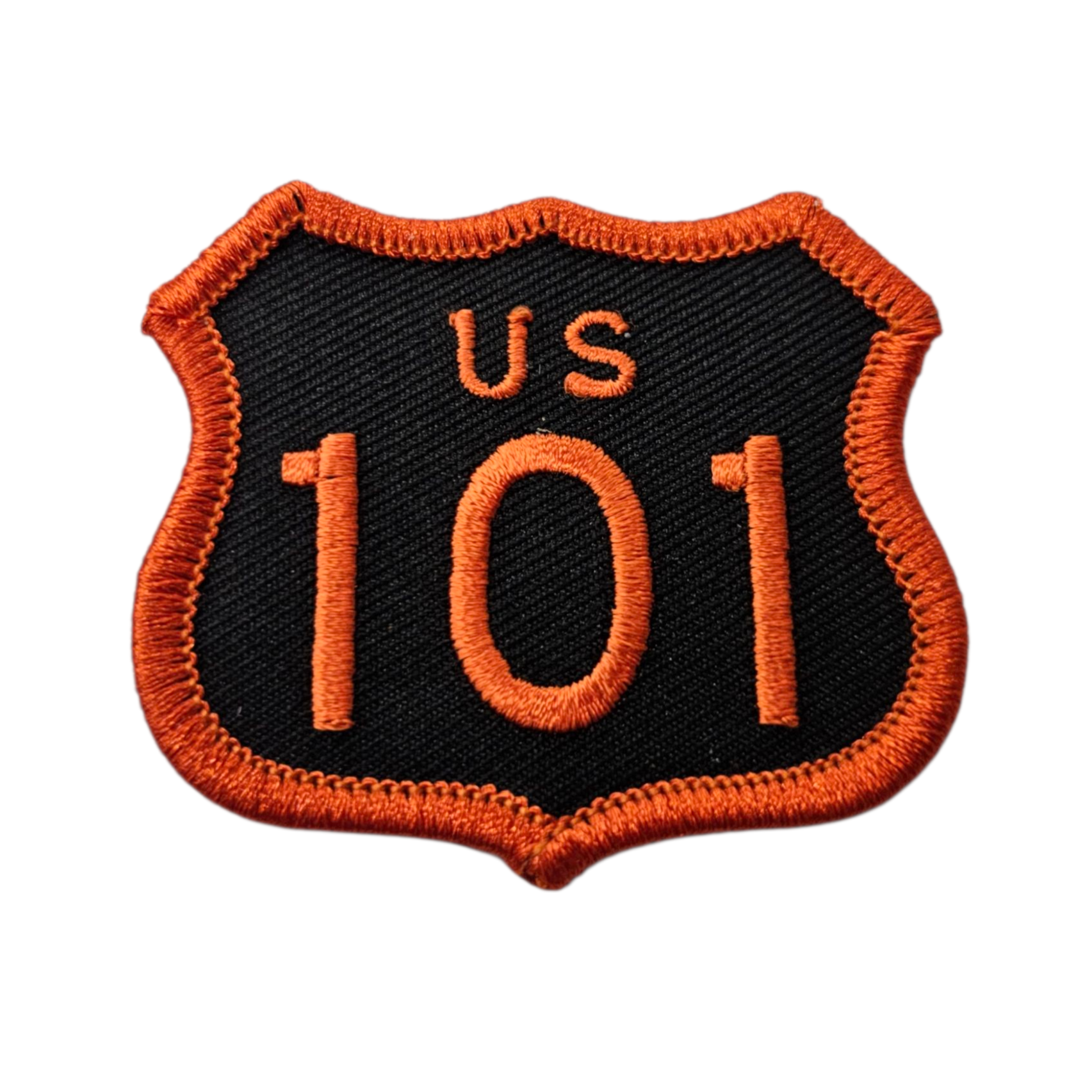 8101-32/2 - US 101 Highway 101 Hwy 101 Souvenir Patch, Badge, or Emblem Black With Orange