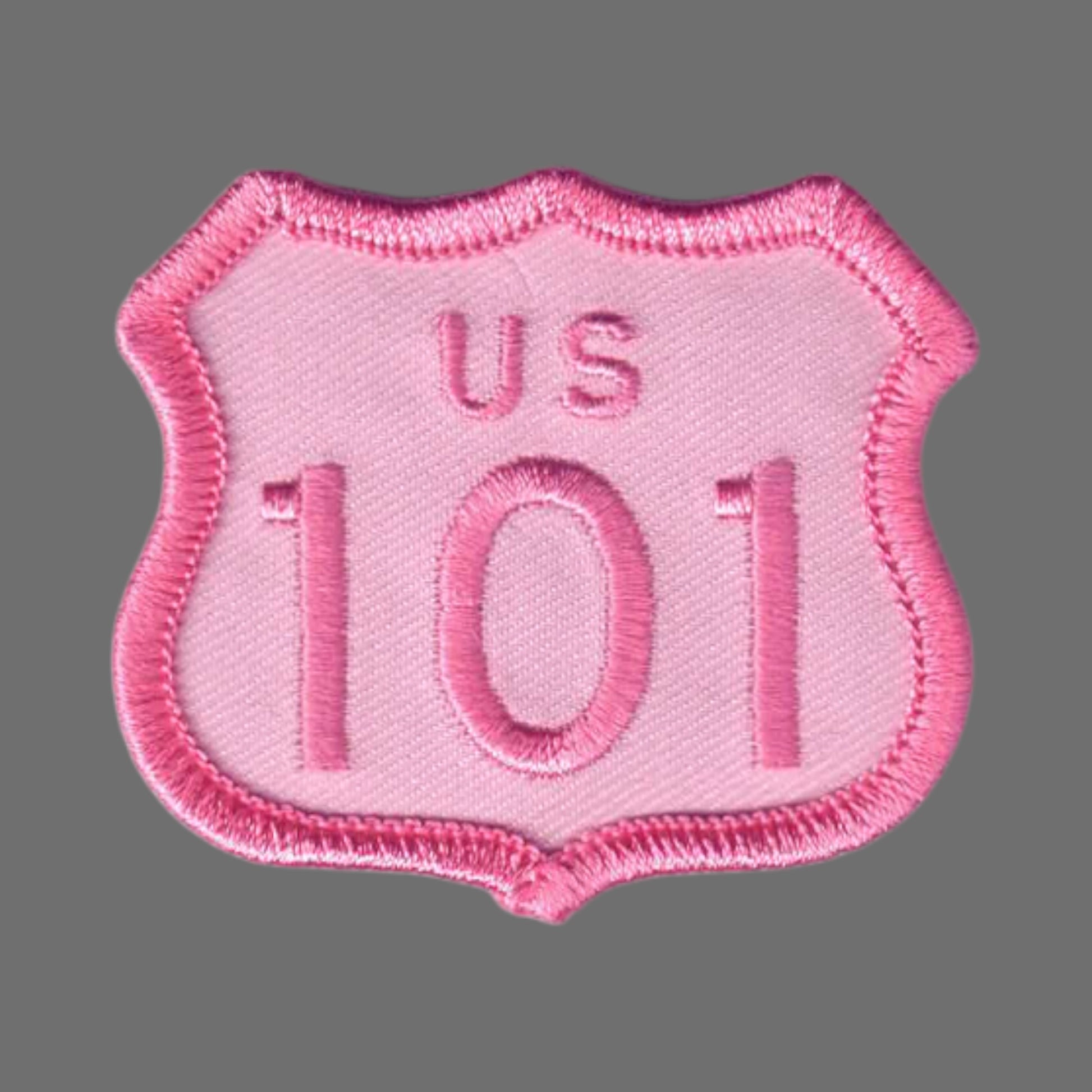 8101-56/2 - US 101 Highway 101 Hwy 101 Souvenir Patch, Badge, or Emblem Pink