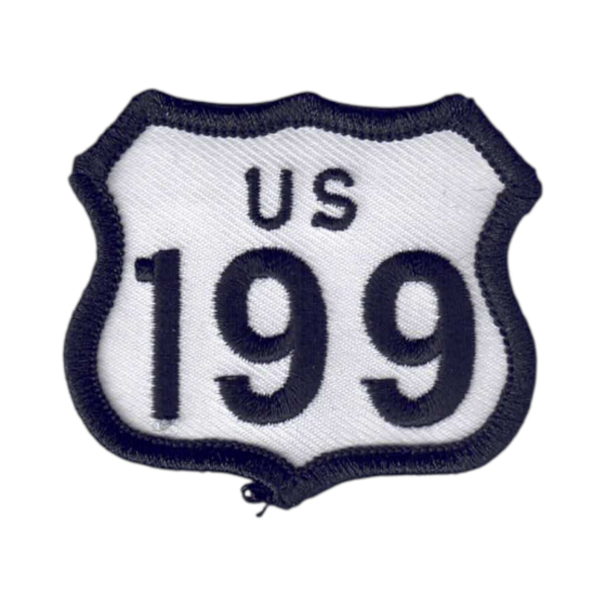 8199/2 - US 199 Highway 199 Hwy 199 Souvenir Patch, Badge, or Emblem White with Black