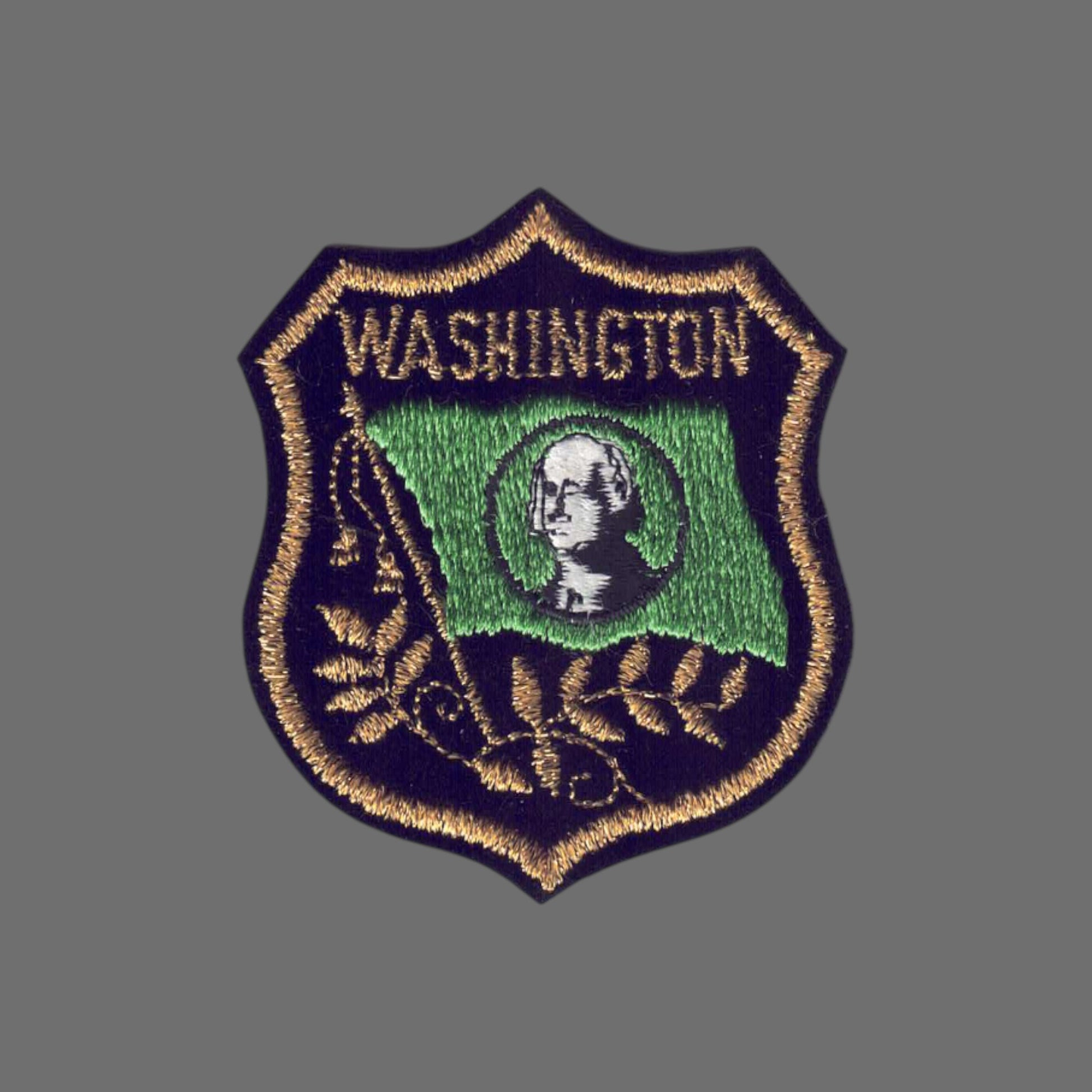 3362 - VINTAGE Washington WA State Flag Shield Black with Gold Mylar Thread Souvenir Embroidered Souvenir Patch, Badge, or Emblem.